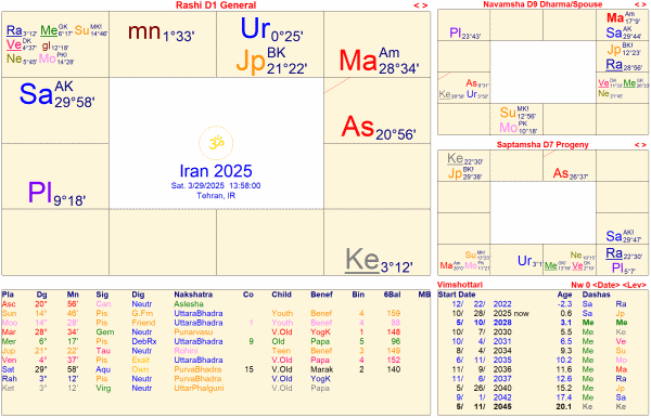 イランの建国図は、1979年のホメイニ師のイラン=イスラム革命で成立したが、そこからマハダシャーは月期→火星期→ラーフ期→木星期と推移している。