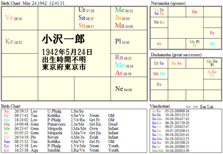 因みに小沢一郎のナヴァムシャはダシャーから検討して、おそらく射手座である。