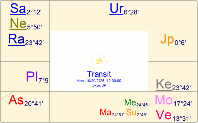 これはドゥシュタナハウスの支配星によって、10室が激しく傷ついたことになるが、しかし、私はこんなに激しく10室が傷ついている吉村代表が高市早苗と並んで、連立樹立の宣言を行ない、大舞台で輝くものなのか疑問に思った。