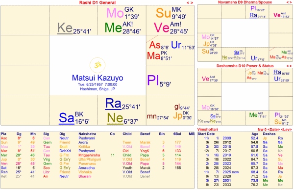 因みにこの星座交換する水星と金星はそれぞれ、AKとAmKであり、星座交換によるジャイミニラージャヨーガを形成していると言っていいかもしれない。