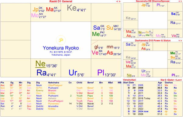 因みにチャラダシャーで見ると、米倉涼子は現在、牡羊座/乙女座の時期である。