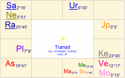 ダシャムシャにおいては月は全く他の惑星からのアスペクトを受けていないが、これは弱い月である。