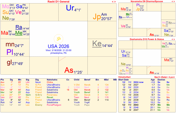 2026年3月18日以降のアメリカは、この6室惑星集中の象意が顕在化してくるはずである。