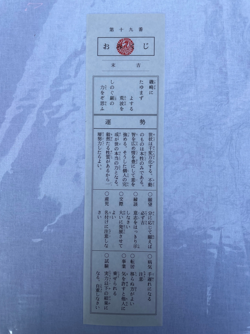 末吉とは、「今はまだ運が整っていないが、物事の“終わり頃・先々”に向かって徐々に良くなる」という意味合いを持つらしく、努力・慎重さ・時間の経過によって運が開いていく型とされるようです。